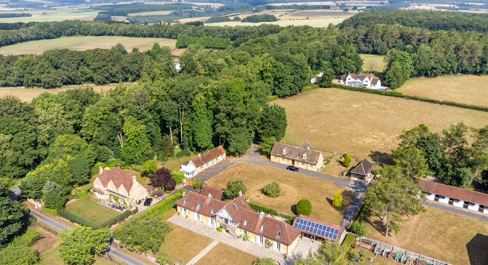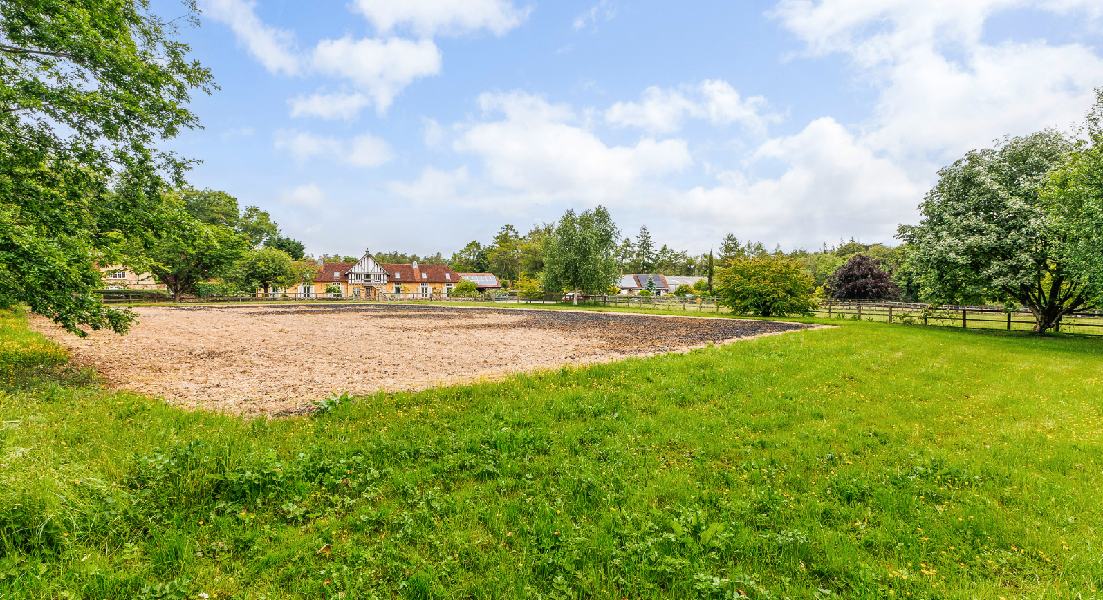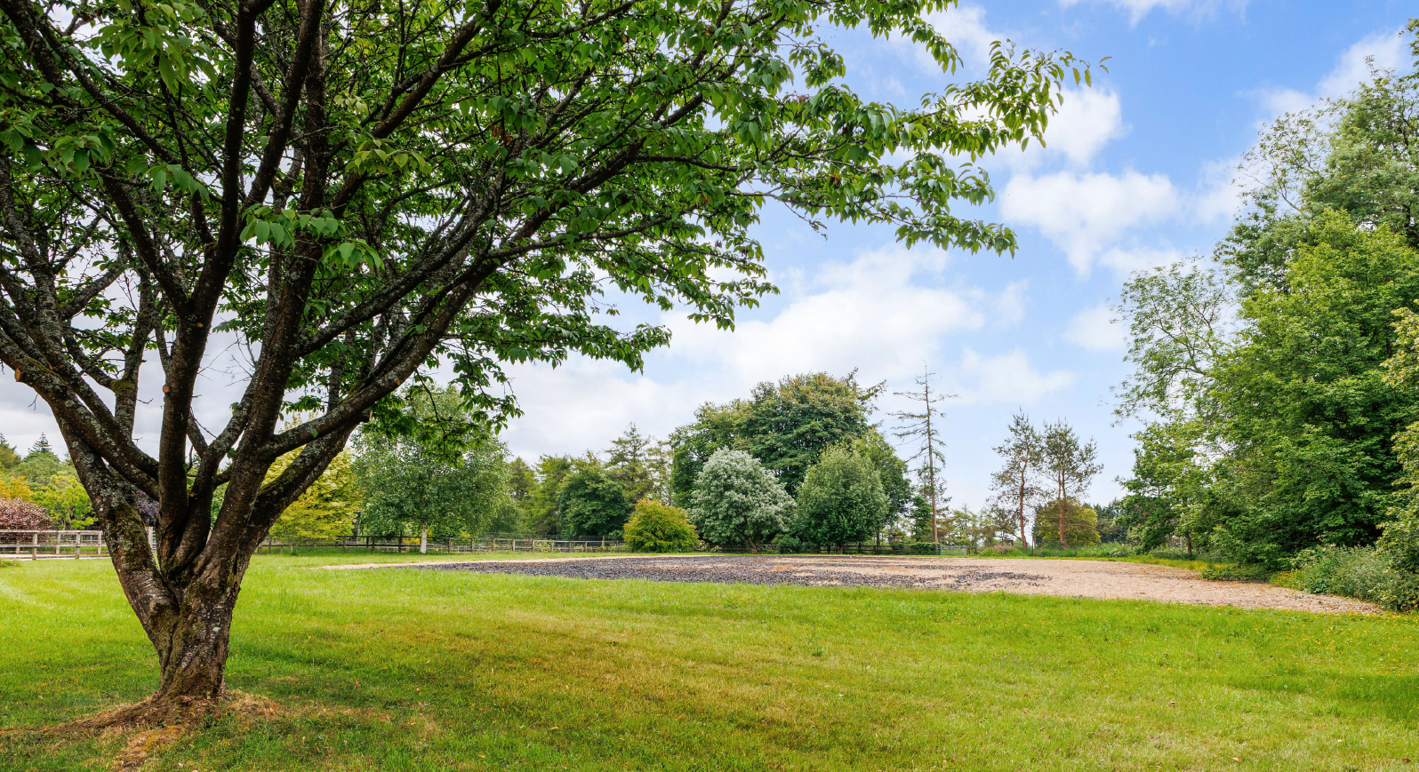 The property sits in a peaceful, gently sloping setting, and includes a manege, and approximately 18 acres of paddocks and mature parkland. It owns its own far-reaching views, protecting against future development.
